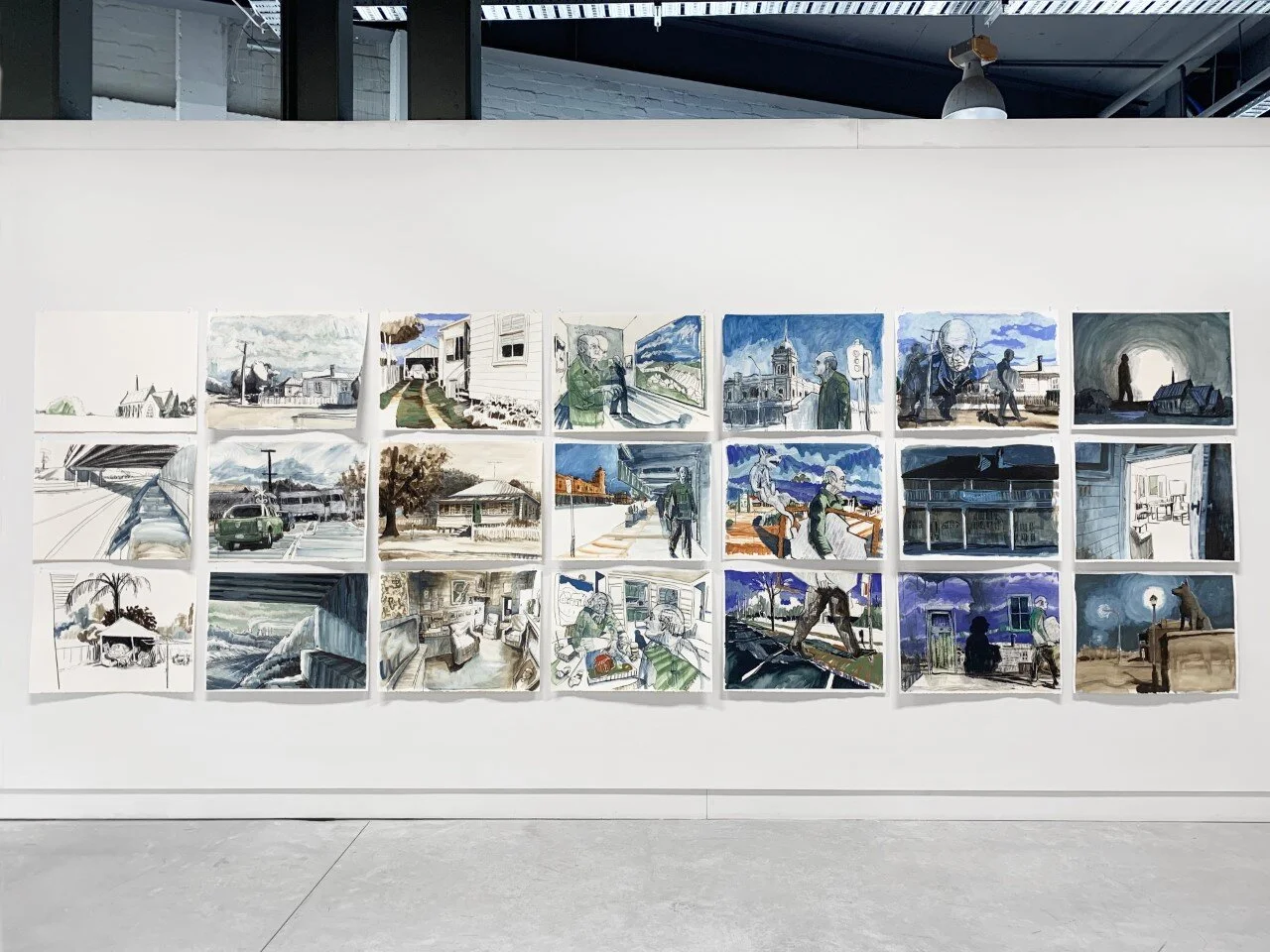 Interpreted through local actors before being animated in chalk, charcoal, watercolour and acrylic, the artwork uses the language of hand drawn animation to make visible the qualities of time and memory. The animation highlights broad experiences of Maitland through elevating domestic and familial interactions, particularly those of local residents from backgrounds. The piece takes place against the backdrops of High St, South Maitland and Horseshoe Bend. This is an intergeneration piece which has been shaped by interviews and exchanges between residents, collaborators, actors and the artist.